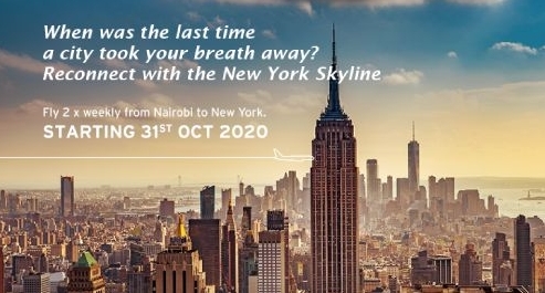 October 19, 2020: Kenya Airways will take off from Nairobi to New York on October 31. The carrier will fly weekly twice from the Kenyan capital, revealed the airline on its LinkedIn page.