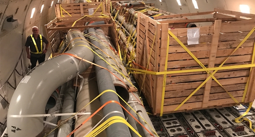 Chapman Freeborn's cargo team did a detailed loadability assessment and provided packaging advice for the urgent consignment - which included six crates of pipes of varying weights and dimensions, with the largest of the pieces measuring over 13-metres in length.