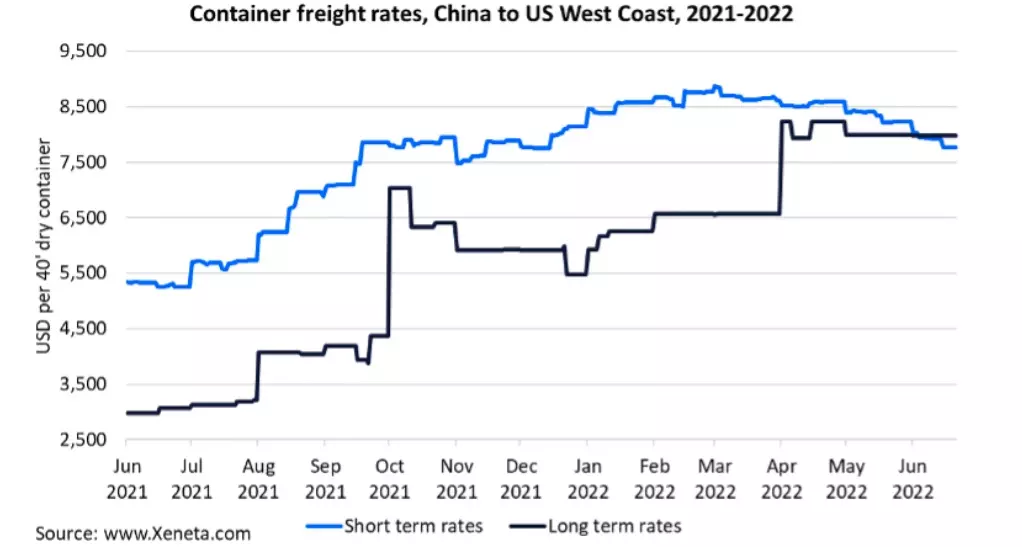Since end-June 2021, short-term rates have climbed 46.5 percent from $5,304/FEU to $7,768. During the same period, long-term rates have zoomed 160 percent, from $3,070 to $7,981 by end-June 2022, the report said.