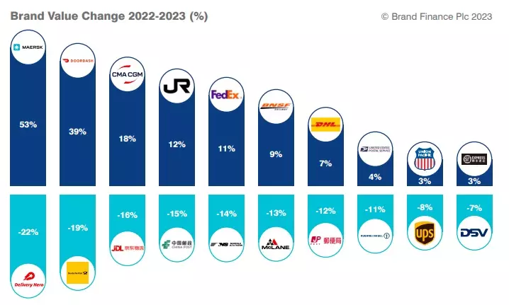 Globally integrated logistics brand Maersk achieved a 53 percent year-on-year brand value growth, taking it to $7.4 billion, according to the latest ranking by Brand Finance.