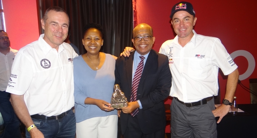 Photo: (L-R) Glyn Hall from Hallspeed, Team Principal of Toyota Gazoo Racing SA; Thola Nzuza, SAA Cargo Communications and Marketing; Tleli Makhetha, General Manager, SAA Cargo; and Giniel De Villiers of Toyota Gazoo Racing SA team.