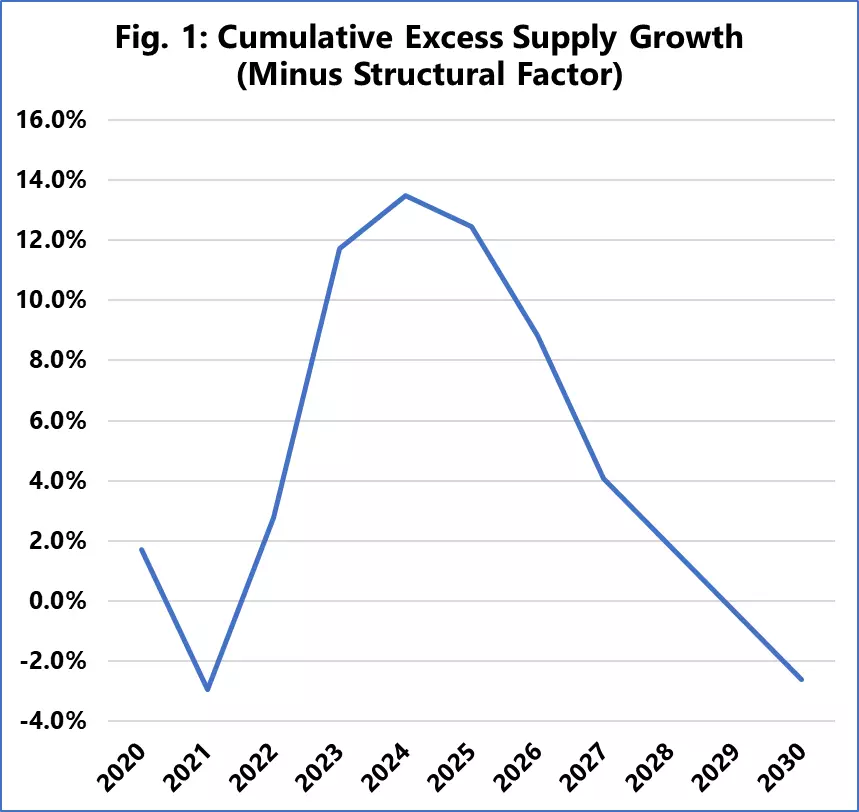 3) Supply growth of just 1.3 percent for the period post-2026, matching the lowest level seen in the past 10 years (in 2016), and