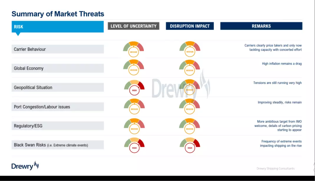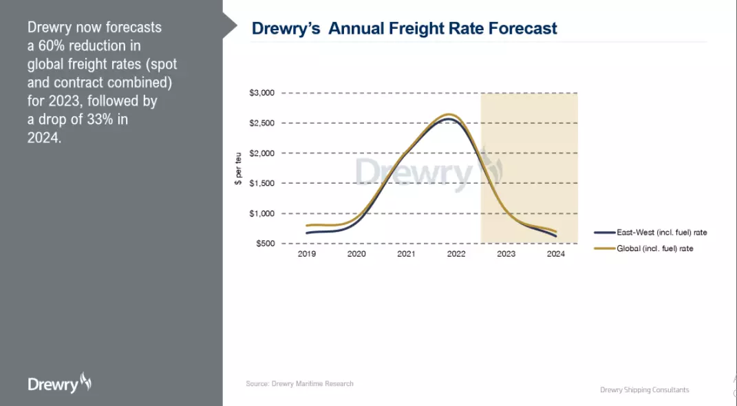 Drewry is expecting a 60% reduction in freight rates this year to be followed by a drop of 33% in 2024