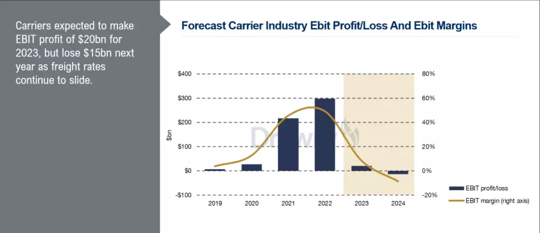 Simon Heaney, Senior Manager, Container Research, Drewry is expecting a 60 percent reduction in freight rates this year "to be followed by a drop of 33 percent in 2024."