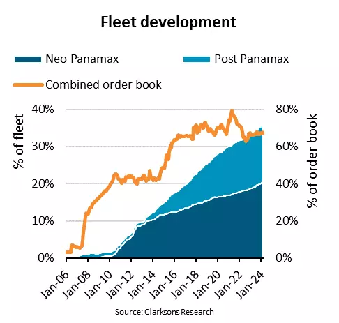 Rasmussen says: "The Neo Panamax and Post Panamax ships have contributed significant reductions in both cost and greenhouse gas emissions compared to smaller ships. Compared to a 10,500 TEU ship, the very largest ships cost 25 percent less per TEU to build and bunker consumption and greenhouse gas emissions are also 25 percent lower per TEU. Neo Panamax and Post Panamax ships contribute nearly 70 percent of the capacity on order and they will continue to drive growth in the fleet. We estimate that at the end of 2025 the average container ship will be larger than 5,000 TEU and the two segments will contribute more than 40% of the fleet’s capacity."